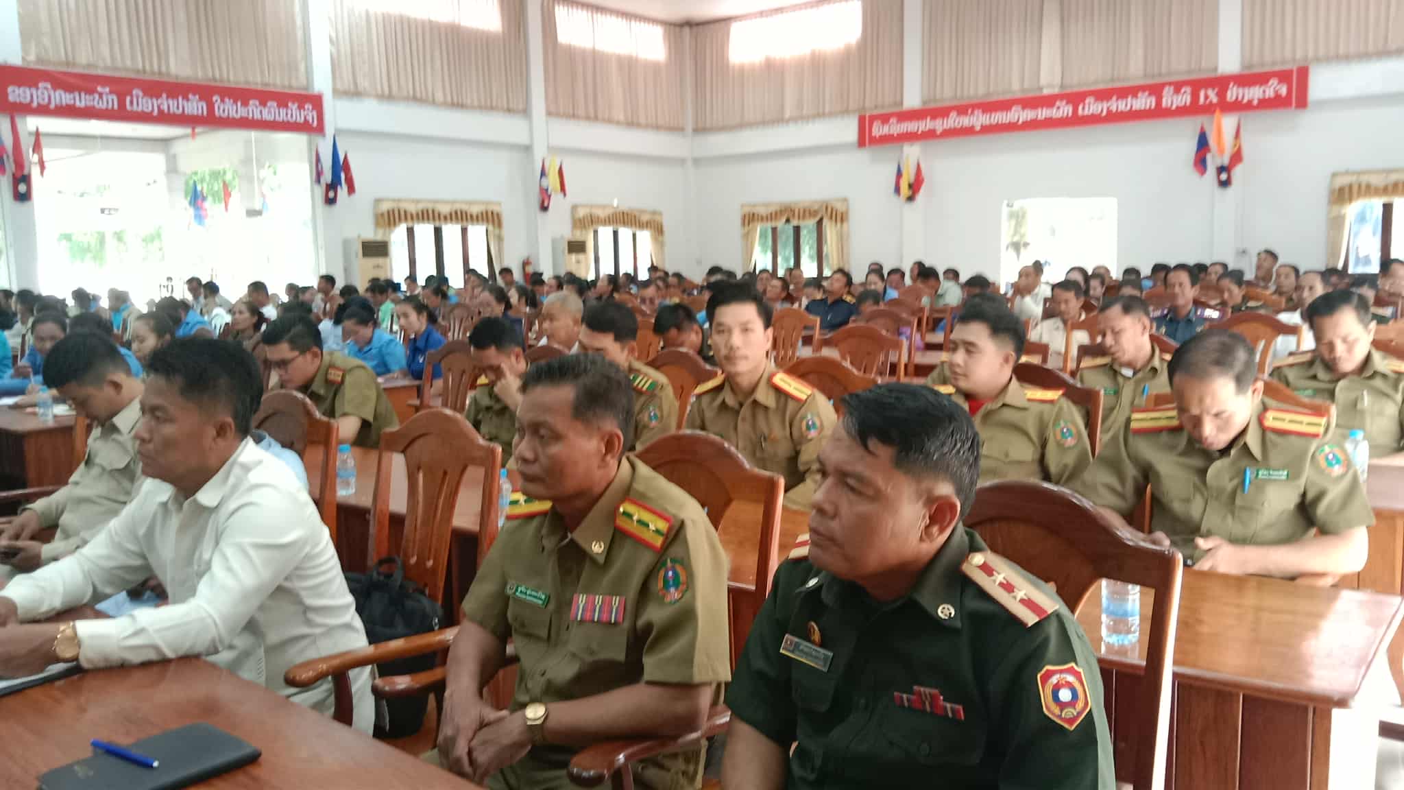 ຕອນເຊົ້າຂອງວັນທີ 21 ພຶດສະພາ 2025 ຄະນະໂຄສະນາອົບຮົມເມືອງຈຳປາສັກ ຈັດພິທີປະຖະກະຖາ 5 ວັນປະຫວັດສາດຄື: ວັນກຳມະກອນສາກົນ ຄົບຮອບ 139 ປີ ( 1/5/1886-1/5/2025 ); ວັນເກີດທ່ານ ກາກມາກ ຄົບຮອບ 207 ປີ ( 5/5/1818-5/5/2025 ); ວັນສ້າງຕັ້ງສາຍພົວພັນການທູດລະຫວ່າງ ສປປລາວ- ສປຈີນ ຄົບຮອບ 64ປີ ( 25/4/1961-25/4/2025 ); ວັນວິລະກຳໂຕນຄຸກຢ່າງມະຫັດສະຈັນຂອງບັນດາຜູ້ນຳຂອງພັກ ແລະ ແນວລາວຮັກຊາດ ຄົບຮອບ 65 ປີ ( 24/5/1960-24/5/2025 ); ວັນຜ່າວົງປິດລ້ອມຂອງກອງພັນທີ2ວິລະຊົນທົ່ງໄຫຫີນຊຽງຂວາງ ຄົບຮອບ 66 ປີ ( 18/5/1959-18/5/2025 ) ພາຍໃຕ້ໃຫ້ກຽດເຂົ້າຮ່ວມເປັນປະທານຂອງ ສະຫາຍ ວິໄລສັກ ສູນທອນ ເຂລາຄະນະບໍລິຫານນງານພັກເມືອງ ເຈົ້າເມືອງໆຈຳປາສັກ, ສະຫາຍ ສຸກກິດຕາ ອິນທະຈັກ ຮອງເລຂາພັກເມືອງໆຈຳປາສັກ ພາກສ່ວນ ມີ ຄະນະປະຈຳພັກເມືອງ, ກຳມະການພັກເມືອງ, ຫົວໜ້າຫ້ອງການ, ຮອງຫົວໜ້າຫ້ອງການ, 2 ກຳລັງປະກອບອາວຸດ ປກສ, ປກຊ, ພະນັກງານລັດຖະກອນທັງໝົດຕະຫຼອດຮອດເລຂາພັກບ້ານ, ອົງການຈັດຕັ້ງທຸກພາກສ່ວນຂອງບ້ານເຂົ້າຮ່ວມຢ່າງຟົດຟື້ນ. ເຊິ່ງມີຈຳນວນພົນເຂົ້າຮ່ວມທັງໝົດ 195 ທ່ານ, ຍິງ 89 ທ່ານ, ສະມາຊິກພັກ 155 ສະຫາຍ ຍິງ 67 ສະຫາຍ.