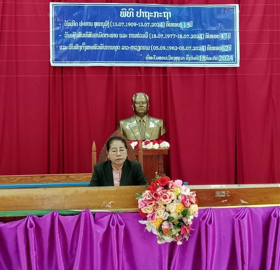 ໃນຕອນເຊົ້າ ຂອງວັນທີ 18 ກໍລະກົດ 2024 ຄະນະໂຄສະນາອົບຮົມເມືອງສຸຂຸມາ ຈັດພິທີ ປາຖະກະຖາ ວັນເກີດ ປະທານ ສຸພານຸວົງ (13.7.1909-13.7.2024) ຄົບຮອບ 115 ປີ, ວັນເຊັນສົນທິສັນຍາມິດຕະພາບ ແລະ ການຮ່ວມມື (18/07/1977-18/07/2024) ຄົບຮອບ 47 ປີ, ວັນສ້າງຕັ້ງສາຍພົວພັນການທູດ ລາວ-ຫວຽດ ນາມ ( 05/09/1962-05/09/2024 ) ຄົບຮອບ 62ປີ ແລະ ເອກະສານ ວັນເກີດຂອງທ່ານ ແອຣເນສໂຕເຈເກວາຣາ ຄົບຮອບ 96 ປີ ຢູ່ທີ່ສະໂມສອນເມືອງສຸຂຸມາ;