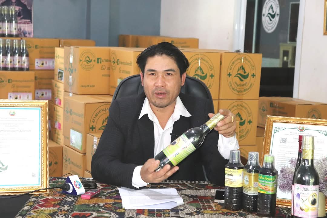 ທ່ານ ຄຳພູວັນ ສີຈັນທອນ ກ່າວຕື່ມວ່າ: ດ້ານການຜະລິດ ແລະ ການຈຳໜ່າຍ ໄດ້ເຮັດການຜະລິດຕົ້ນຕໍ ກໍແມ່ນຢານ້ຳດຳທີ່ຊ່ວຍຢັບຢັ້ງການເປັນໂລກກະເພາະ, ມືນຊາ, ອຳມະພຶກ, ອຳມະພາດ ແລະ ບຳລຸງເສີມສ້າງຮ່າງກາຍ. ຈາກນັ້ນ ກໍແມ່ນຢາມ່ອງ ແລະ ຢາຕົ້ມ. ວັດຖຸດິບ ທີ່ນໍາໃຊ້ໃນການຜະລິດ ປະກອບມີ ເປືອກປະດົງ, ໝາກຕຸມ, ເຫັດຫຼິງຈື, ອ້ອຍດໍາ, ນໍ້າເຜິ້ງ, ເປືອກແຄໃຫຍ່, ຫຍ້າຍຸບຍອບ, ຂີ້ເໝັ້ນ, ໝາກຂາມປ້ອມ ແລະ ພືດເປັນຢາຈໍານວນໜຶ່ງ ເຊິ່ງເອົາມາຈາກທໍາມະຊາດ ໂດຍອາໄສປະຊາຊົນທ້ອງຖິ່ນ ເອົາມາສົ່ງໃຫ້. ສໍາລັບຂັ້ນຕອນການຜະລິດ ມີຄວາມສະອາດ, ຖືກຫຼັກອະນາໄມ ແລະ ໄດ້ຮັບໃບຢັ້ງຢືນຄຸນນະພາບ ຈາກອາຫານ ແລະ ຢາ, ສາມາດຜະລິດໄດ້ 10.000 – 15.000 ຂວດຕໍ່ປີ, ມີລາຍຮັບສະເລ່ຍເຖິງ 1 - 1,5 ຕື້ກີບຕໍ່ປີ, ເຮັດໃຫ້ຄອບຄົວ ຫຼຸດພົ້ນອອກຈາກຄວາມທຸກຍາກ, ກາຍເປັນຄອບຄົວທີ່ກຸ້ມກິນຈກ້າວໄປເຖິງຄອບຄົວຢູ່ດີກິນດີ ແລະ ຮັ່ງມີເທື່ອລະກ້າວ.