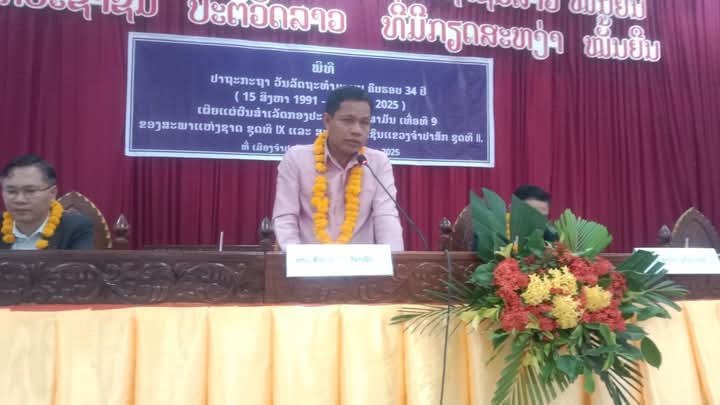ເຊົ້າຂອງວັນທີ 15 ສິງຫາ 2025 ທີ່ຜ່ານມານີ້ ທີ່ສະໂມສອນເມືອງຈຳປາສັກ ໄດ້ຈັດກອງປະຊຸມປາຖະກະຖາວັນລັດຖະທຳມະນູນ ຄົບຮອບ 35 ປີ ແລະ ເຜີຍແຜ່ຜົນສໍາເລັດກອງປະຊຸມສະໄໝສາມັນເທື່ອທີ IX ຂອງສະພາແຫ່ງຊາດ ຊຸດທີ IX ແລະ ສະພາປະຊາຊົນແຂວງຈຳປາສັກ ຊຸດທີ II ຂຶ້ນ.