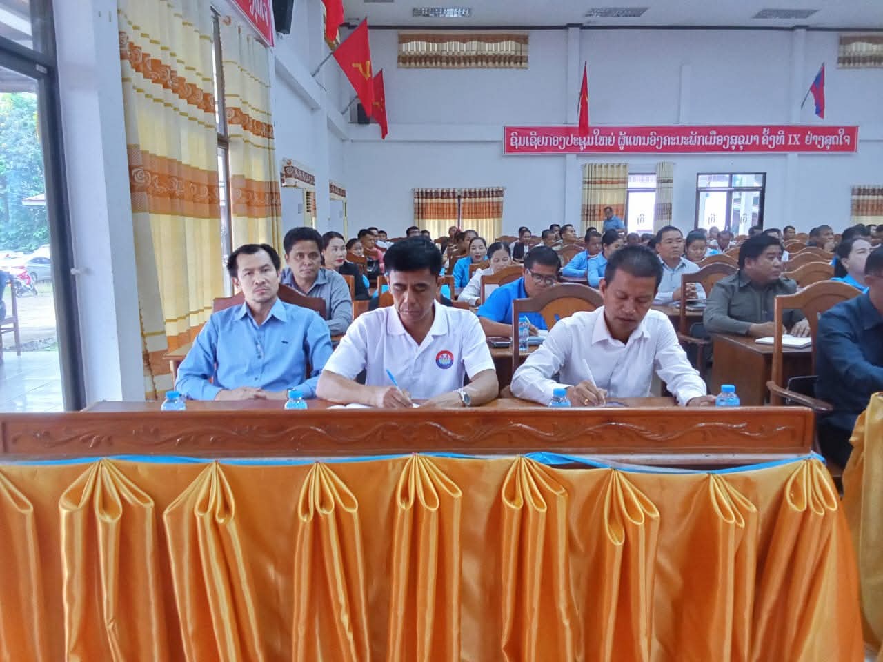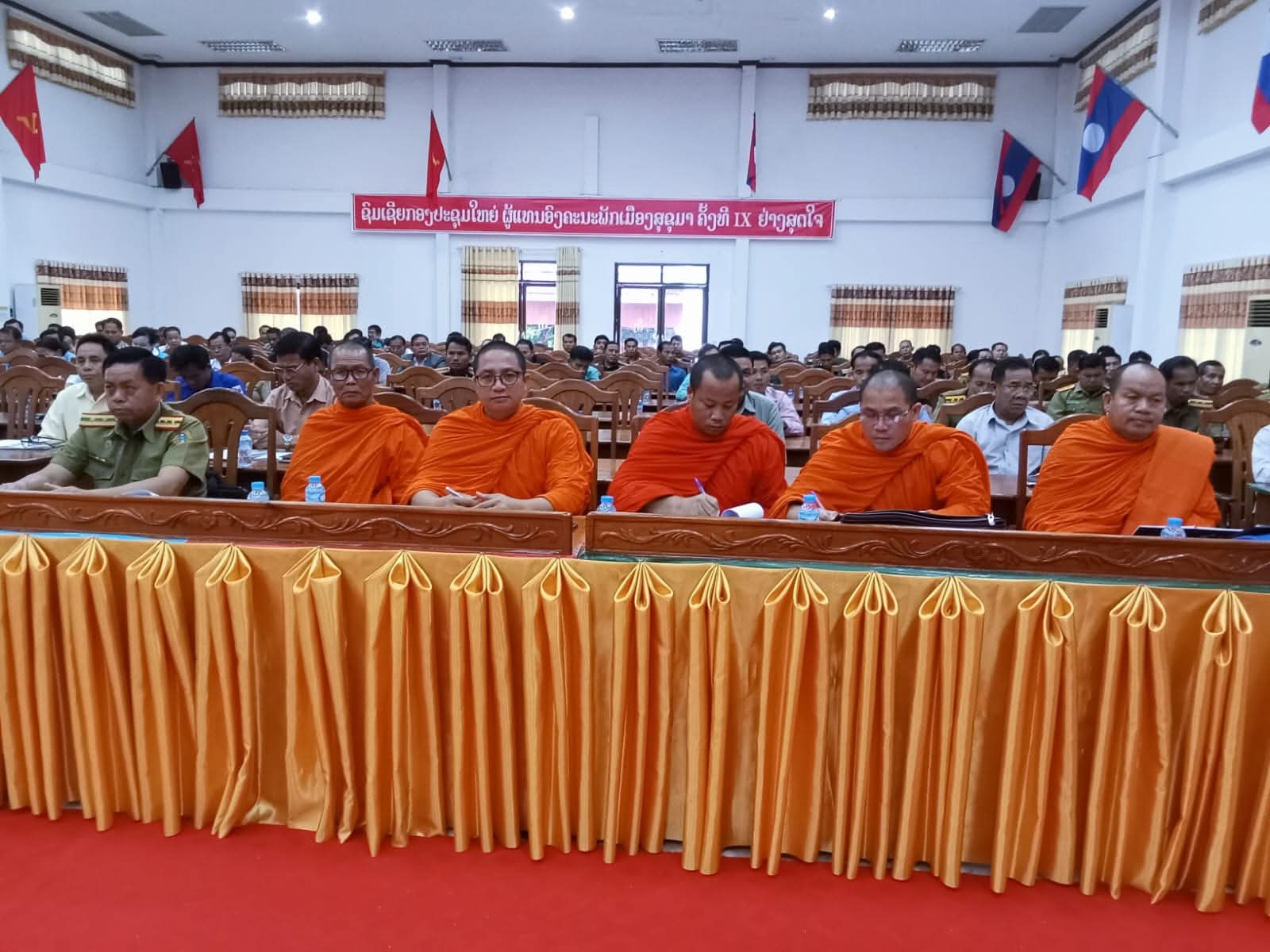 ໂດຍການເປັນປະທານ ຂອງສະຫາຍ ປອ. ຄຳໃຕ ແກ້ວປະເສີດ, ເລຂາຄະນະບໍລິຫານງານພັກເມືອງສຸຂຸມາ, ມີຄະນະປະຈຳພັກເມືອງ, ກຳມະການພັເມືອງ, ຫົວໜ້າຫ້ອງການ, ຄະນະຫ້ອງການ, ກອງກໍ່ສ້າງຮາກຖານແຂວງ ພ້ອມດ້ວຍພະນັກງານສະມາຊີກພັກທັງໝົດ, ກຳລັງ ປກສ-ປກຊ, ປະທານ 6 ກຸ່ມບ້ານ ແລະ 4 ບ້ານໃຫ່ຍໃນທົ່ວເມືອງ, ມີພຣະສົງ ແລະ ປະທານແນວຂອງບ້ານ ຈຳນວນ 173 ຄົນ, ຍິງ 49 ຄົນ, ໃນນັ້ນ ມີພຣະສົງ 5 ອົງ.
