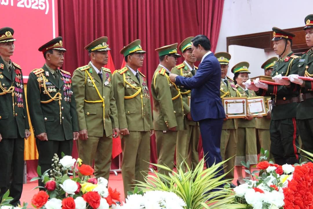 ຈາກນັ້ນ ສະຫາຍ ອາລຸນໄຊ ສູນນະລາດ ໄດ້ໃຫ້ກຽດປະດັບຫຼຽນໄຊ ໃຫ້ກັບສະມາຊິກພັກ ຜູ້ທີ່ມີຜົນງານ, ຄຸນງາມຄວາມດີ ໃນພາລະກິດປົກປັກຮັກສາ ແລະ ສ້າງສາພັດທະນາປະເທດຊາດ ຕະຫຼອດໄລຍະຜ່ານມາ. ພ້ອມນີ້ຍັງໄດ້ມີການຮັບຊົມການສະແດງສີລະປະ, ເບິ່ງການວາງສະແດງຮູບພາບ ແລະ ທ່ຽວຊົມຮ້ານວາງສະແດງສິນຄ້າອີກດ້ວຍ