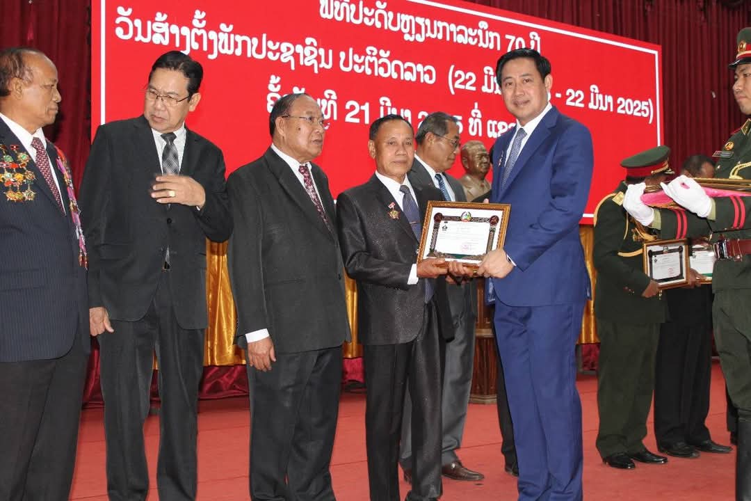 ໃນວັນທີ 22 ມີນາ 2025 ໄດ້ມີພິທີວາງພວງມະລາຢູ່ອະນຸສາວະລີນັກຮົບນິລະນາມ, ວາງກະຕ່າດອກໄມ້ສອນສະຖານ ປະທານໄກສອນ ພົມວິຫານ ທີ່ເດີນສະໜາມແດງ ນະຄອນປາກເຊ, ຈາກນັ້ນ, ກໍເຂົ້າຮ່ວມພິທີໂຮມຊຸມນຸມໃຫຍ່ສະເຫຼີມສະຫຼອງວັນສ້າງຕັ້ງພັກປະຊາຊົນປະຕິວັດລາວ ຄົບຮອບ 70 ປີ 22 ມີນາ 1955-22 ມີນາ 2025 ທີ່ນະຄອນ ຫຼວງວຽງຈັນ. ຜ່ານການຖ່າຍທອດສົດທາງໄກຮັບຊົມໃນທົ່ວປະເທດ, ໂດຍແມ່ນສະຫາຍ ທອງລຸນ ສີສຸລິດ ເລຂາທິການໃຫຍ່ພັກປະຊາຊົນ ປະຕິວັດລາວ ປະທານປະເທດ ແຫ່ງ ສປປ ລາວ ໃຫ້ກຽດກ່າວສູນທອນພົດ ຫວນຄືນມູນເຊື້ອການເຕີບໃຫຍ່ຂະຫຍາຍຕົວຂອງພັກໃນແຕ່ລະໄລຍະ ຈົນສາມາດນໍາພາປະເທດຊາດ ແລະ ປະຊາຊົນ ກ້າວສູ່ຄວາມສີວິໄລໃນປັດຈຸບັນ. ຢູ່ທີ່ສະໂມສອນຂອງແຂວງ ໂດຍມີສະຫາຍ ອາລຸນໄຊ ສູນນະລາດ ກໍາມະການສູນກາງພັກ ເລຂາພັກແຂວງ ເຈົ້າແຂວງ ຈໍາປາສັກ, ສະຫາຍ ສາຍທອງ ໄຊຍະວົງ ຮອງເລຂາພັກແຂວງ ປະທານສະພາປະຊາຊົນແຂວງ, ສະຫາຍ ສະນັ່ນ ສີພາພົມມະຈັນ ຮອງເລຂາພັກແຂວງ ຫົວໜ້າຄະນະຈັດຕັ້ງແຂວງ, ມີຄະນະປະຈໍາພັກແຂວງ, ກໍາມະການພັກແຂວງ, ພະແນກການຂອງແຂວງ, ກໍາລັງ ປກສ-ປກຊ, ສະຖາບັນການສຶກສາ, ສະມາຊິກພັກ ແລະ ພະນັກງານ-ລັດຖະກອນເຂົ້າຮ່ວມ.