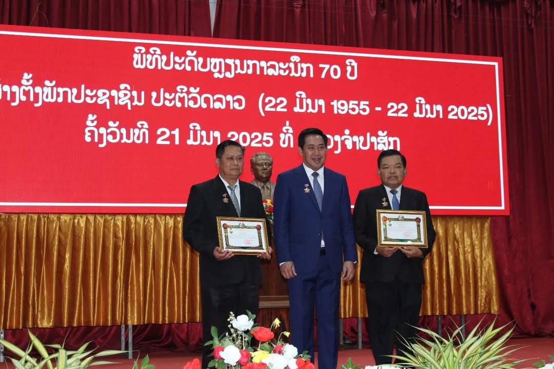 ແຂວງຈໍາປາສັກ ຈັດພິທີສະເຫຼີມສະຫຼອງວັນສ້າງຕັ້ງພັກປະຊາຊົນ ປະຕິວັດລາວ ຄົບຮອບ 70 ປີ(22 ມີນາ 1955-22 ມີນາ 2025) ຂຶ້ນໃນວັນທີ 21-22 ມີນາ 2025 ທີ່ສະໂມສອນຂອງແຂວງ ຫັກ4, ໃຫ້ກຽດເຂົ້າຮ່ວມ ຂອງທ່ານ ອາລຸນໄຊ ສູນນະລາດກໍາມະການສູນກາງພັກ ເລຂາພັກແຂວງ ເຈົ້າແຂວງຈໍາປາສັກ, ມີທ່ານ ສະນັ່ນ ສີພາພົມມະຈັນ ຮອງເລຂາພັກແຂວງ ຫົວໜ້າຄະນະຈັດຕັ້ງແຂວງ, ມີການນໍາຂອງແຂວງ, ອະດີດພະນັກງານການນໍາອາວຸໂສບໍານານ, ມີພະແນກການຂອງແຂວງ, ກໍາລັງ ປກຊ-ປກສ, 9 ເມືອງ, ນະຄອນປາກເຊ ແລະ ສະຖາບັນການສຶກສາເຂົ້າຮ່ວມ.