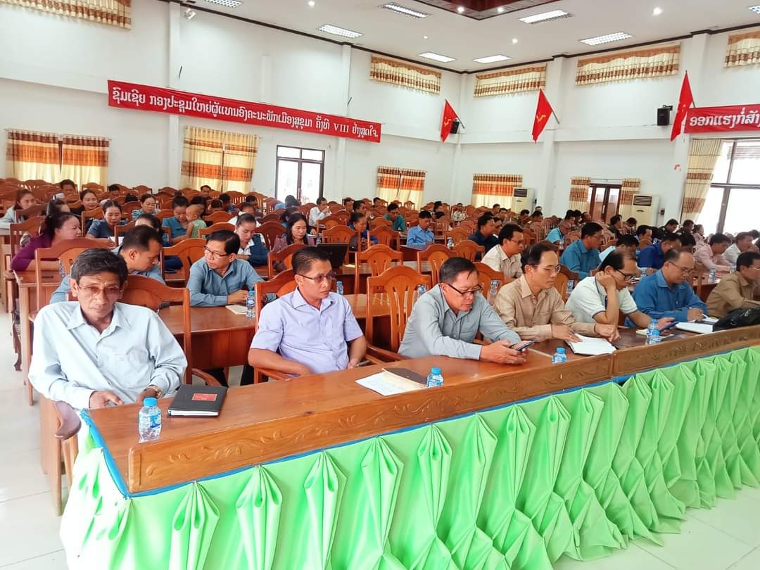 ເຊິ່ງມີຜູ້ເຂົ້າຮ່ວມຮັບຟັງ ມີ ຄະນະປະຈຳພັກເມືອງ, ກຳມະການພັກເມືອງ, ຫົວໜ້າ-ຮອງຫົວໜ້າຫ້ອງການ, ກອງກໍ່ສ້າງຮາກຖານແຂວງ, ເລຂາຄະນະພັກຮາກຖານ 6 ກຸ່ມ ແລະ 4 ບ້ານໃຫຍ່, ກຳລັງປ.ກ.ສ, ປ.ກຊ ພ້ອມພະນັກງານ ອ້ອມຂ້າງເມືອງເຂົ້າຮ່ວມ ຈຳນວນພົນທັງໝົດ 117 ຄົນ, ຍິງ 35 ຄົນ.