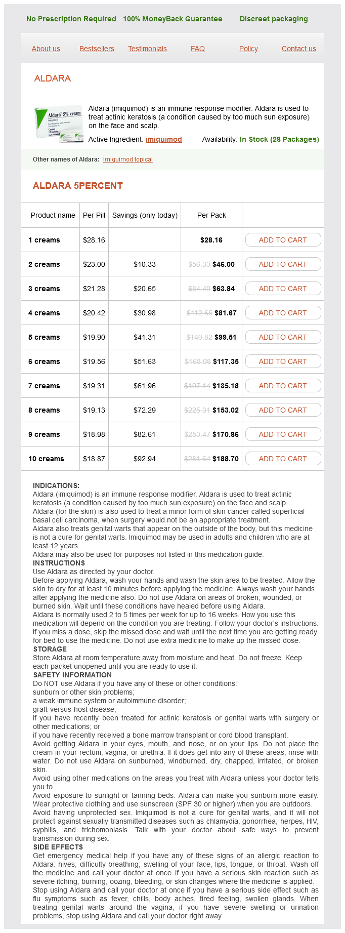 Aldara packs: 1 creams, 2 creams, 3 creams, 4 creams, 5 creams, 6 creams, 7 creams, 8 creams, 9 creams, 10 creams