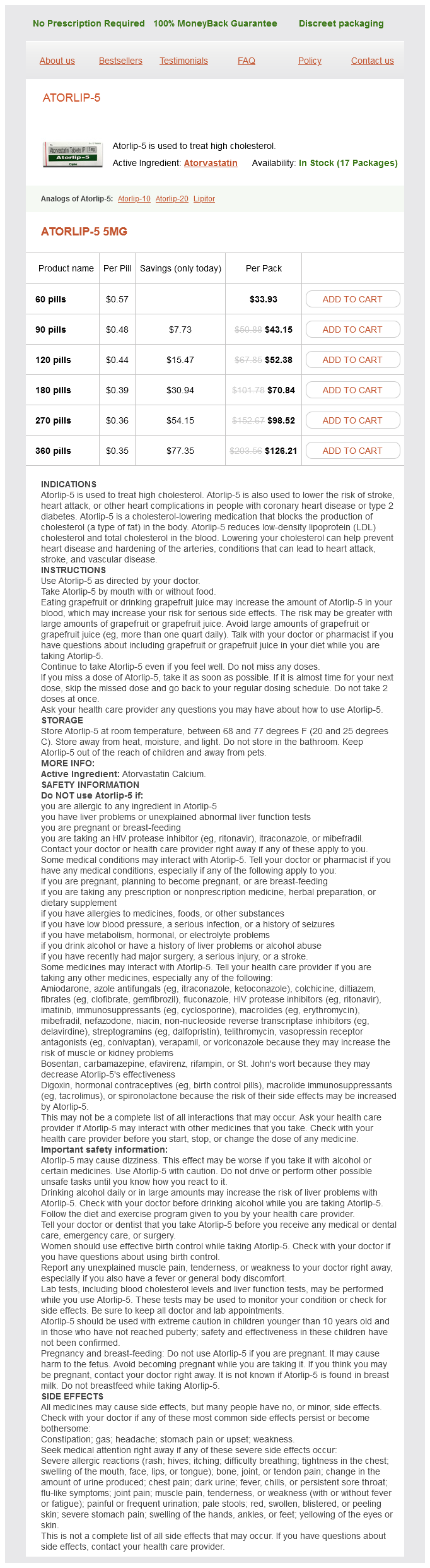 Atorlip-5 packs: 60 pills, 90 pills, 120 pills, 180 pills, 270 pills, 360 pills