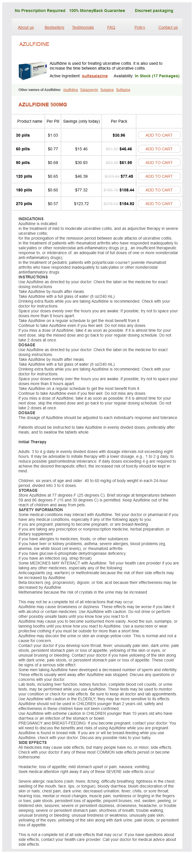 Azulfidine packs: 30 pills, 60 pills, 90 pills, 120 pills, 180 pills, 270 pills
