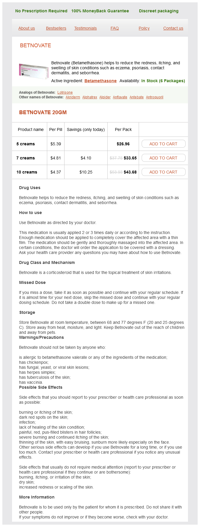 Betnovate dosages: 20 gm