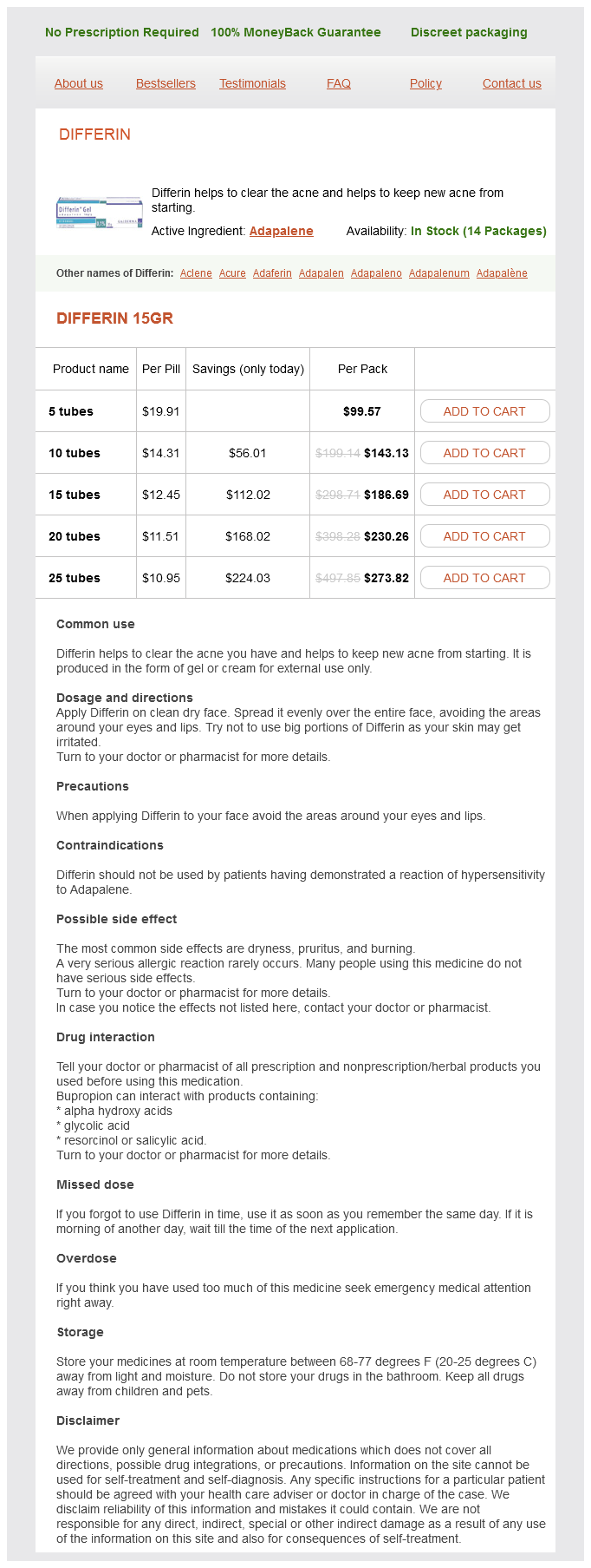 Differin dosages: 15 gr