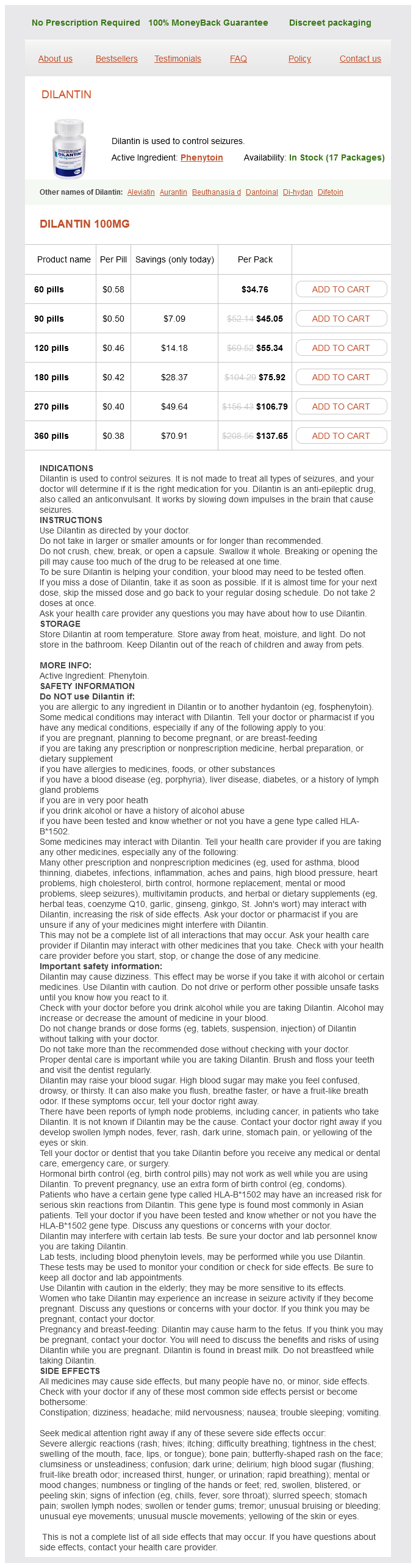 Dilantin packs: 60 pills, 90 pills, 120 pills, 180 pills, 270 pills, 360 pills