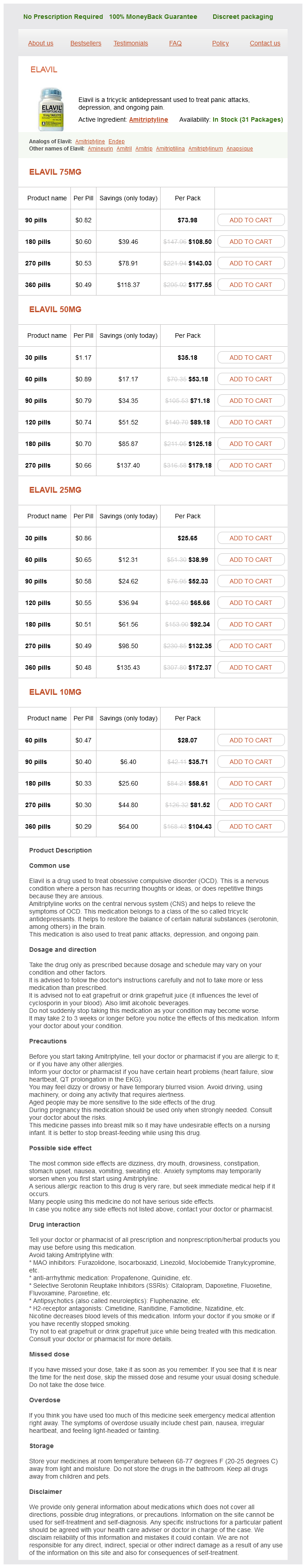 Elavil packs: 90 pills, 180 pills, 270 pills, 360 pills, 30 pills, 60 pills, 120 pills