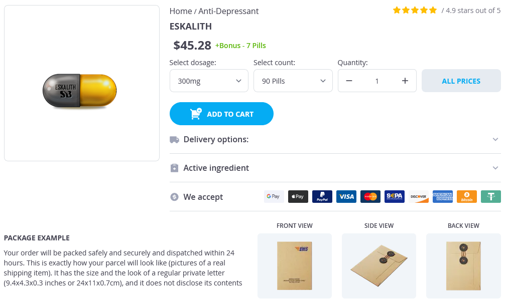 - Eskalith 300mg × 270 Pills - $105.65