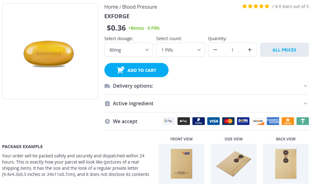 - Exforge 80mg × 1 Pills - $0.36