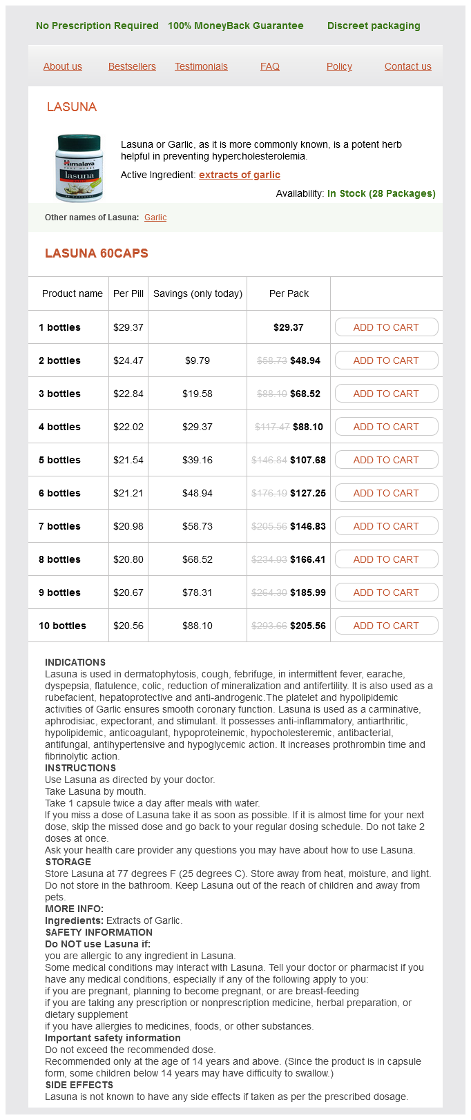 Tags: buy lasuna 60 caps low price, order 60 caps lasuna with mastercard, discount lasuna 60 caps overnight delivery, lasuna 60 caps purchase mastercard