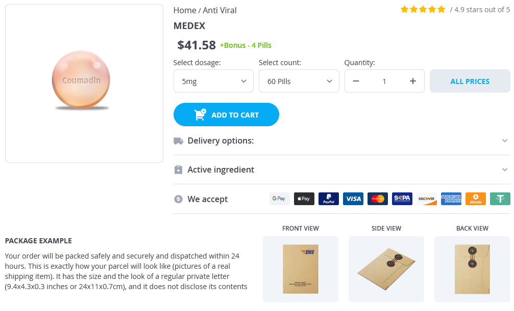 - Medex 5mg × 60 Pills - $41.58