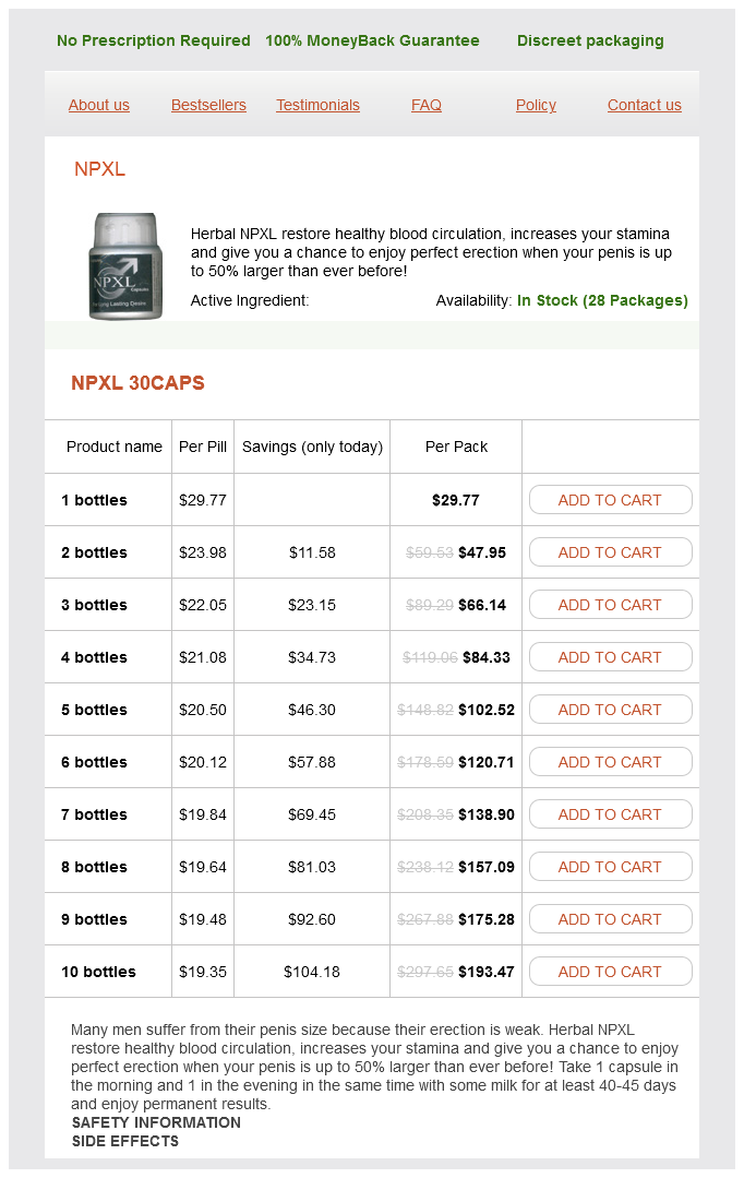 NPXL dosages: 30 caps