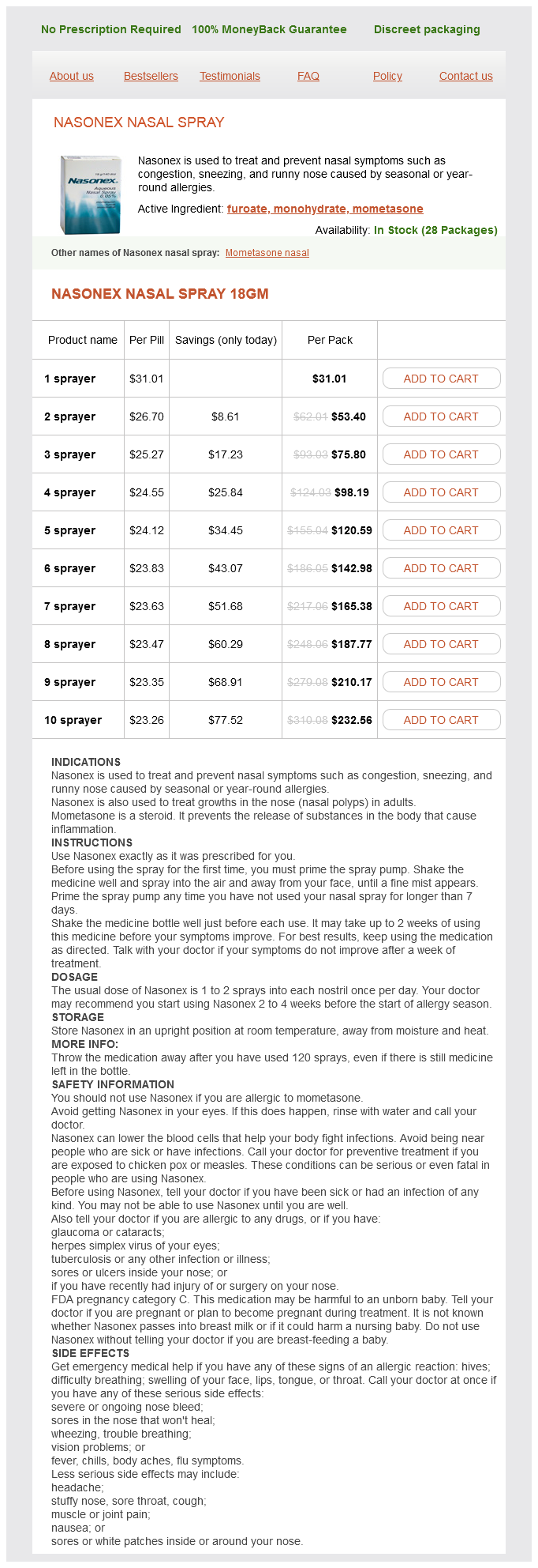 Nasonex nasal spray packs: 1 sprayer, 2 sprayer, 3 sprayer, 4 sprayer, 5 sprayer, 6 sprayer, 7 sprayer, 8 sprayer, 9 sprayer, 10 sprayer