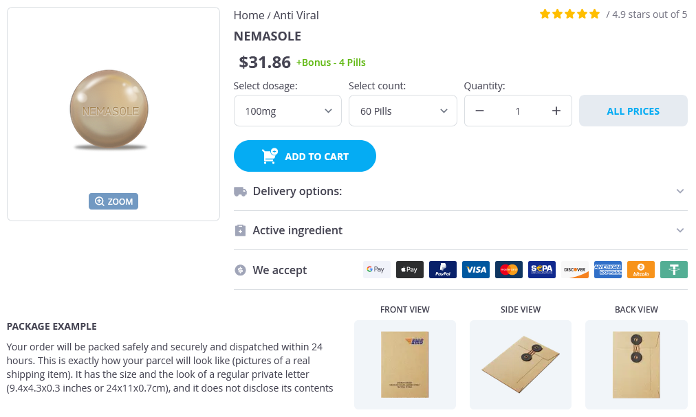 - Nemasole 100mg × 60 Pills - $31.86