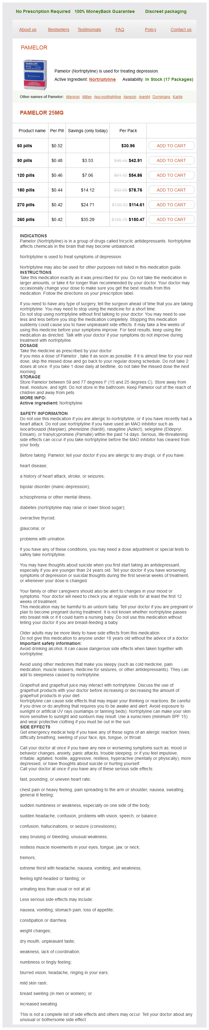 Pamelor packs: 60 pills, 90 pills, 120 pills, 180 pills, 270 pills, 360 pills