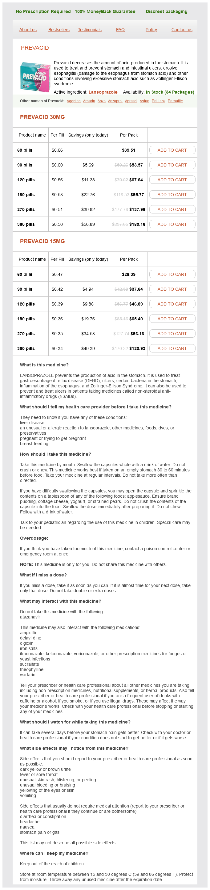 Prevacid packs: 60 pills, 90 pills, 120 pills, 180 pills, 270 pills, 360 pills