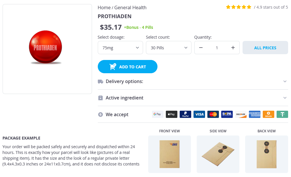 - Prothiaden 75mg × 120 Pills - $97.25