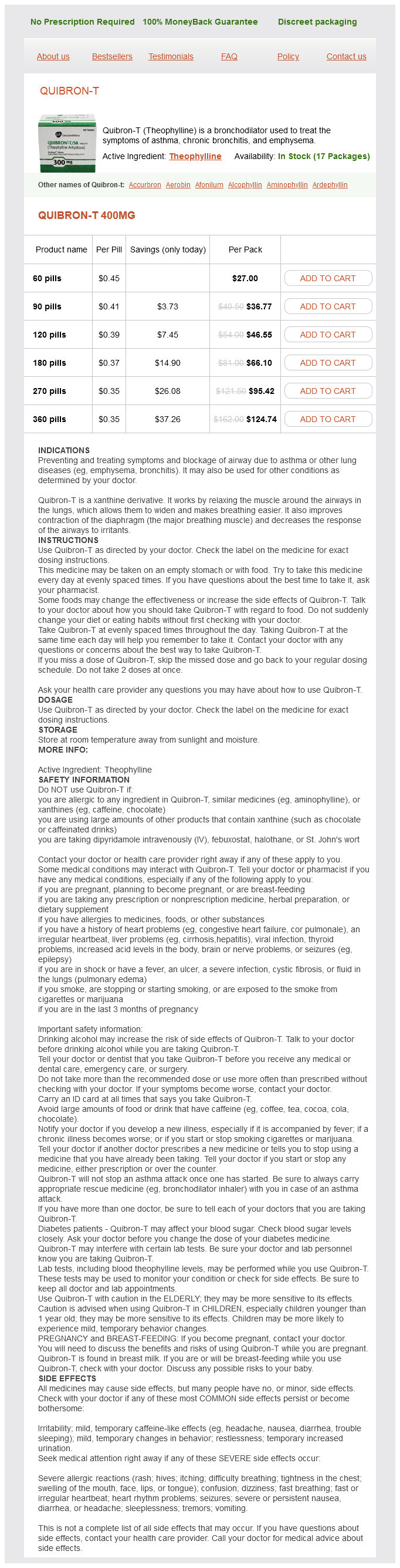 Quibron-t packs: 60 pills, 90 pills, 120 pills, 180 pills, 270 pills, 360 pills