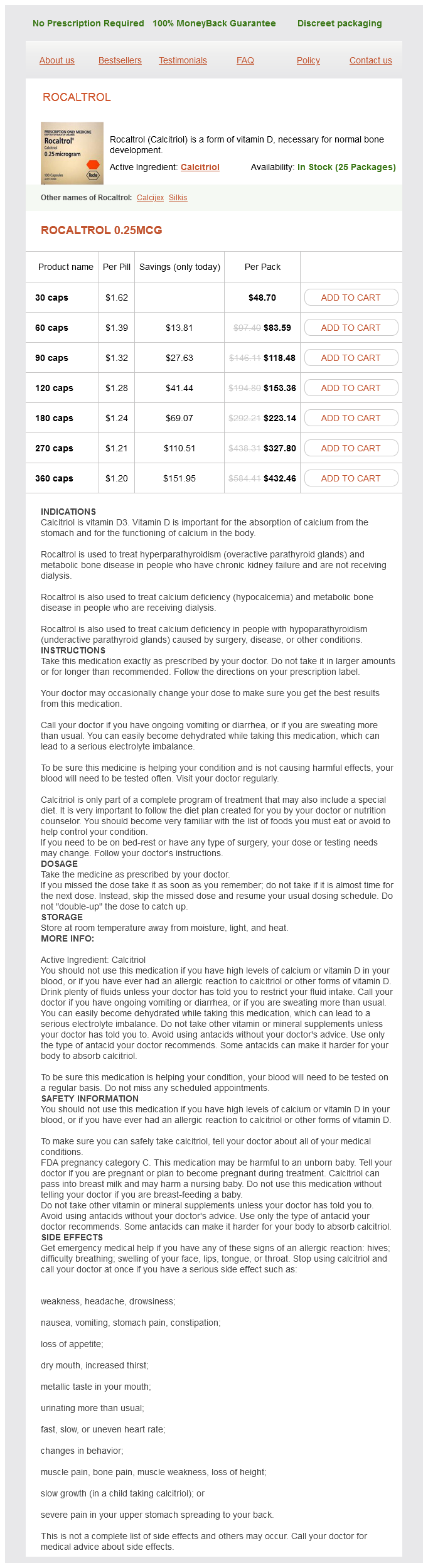 Rocaltrol packs: 30 caps, 60 caps, 90 caps, 120 caps, 180 caps, 270 caps, 360 caps