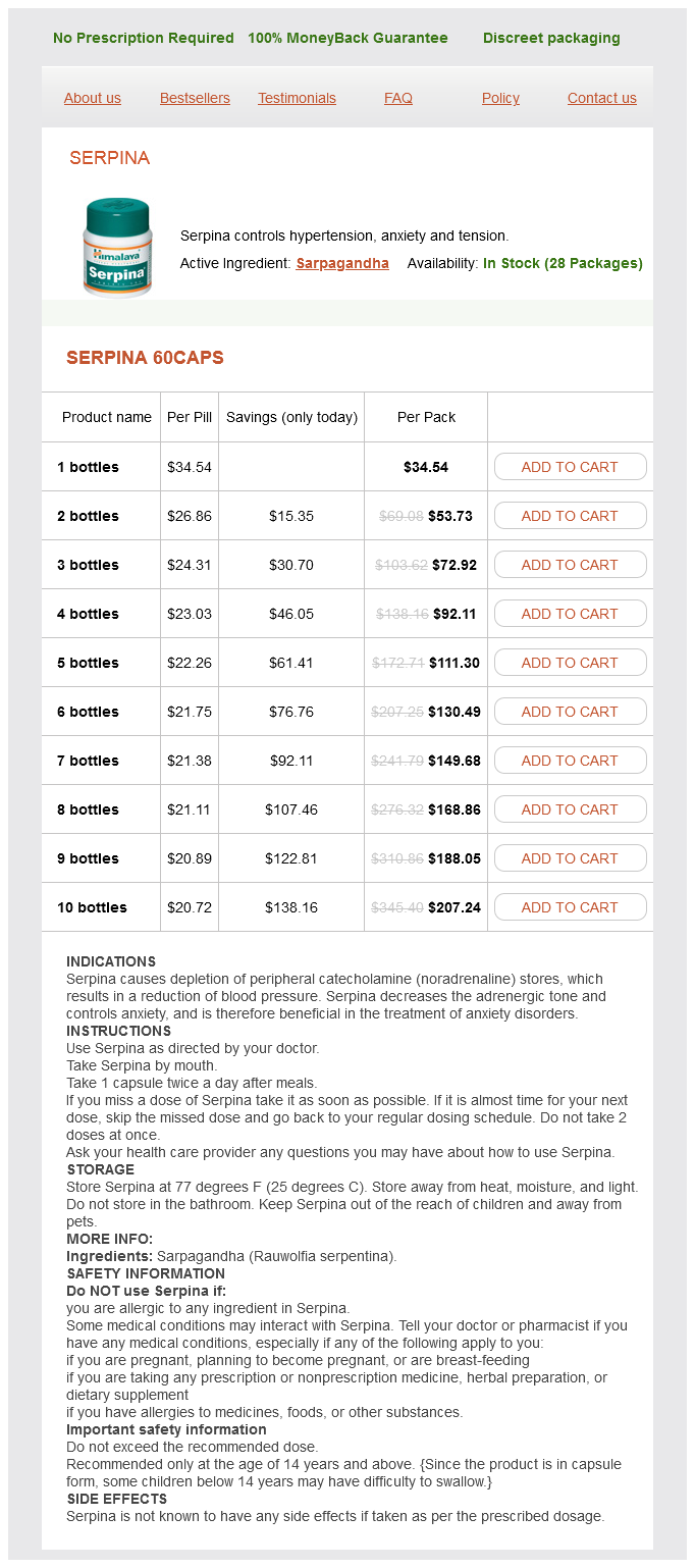 Serpina dosages: 60 caps