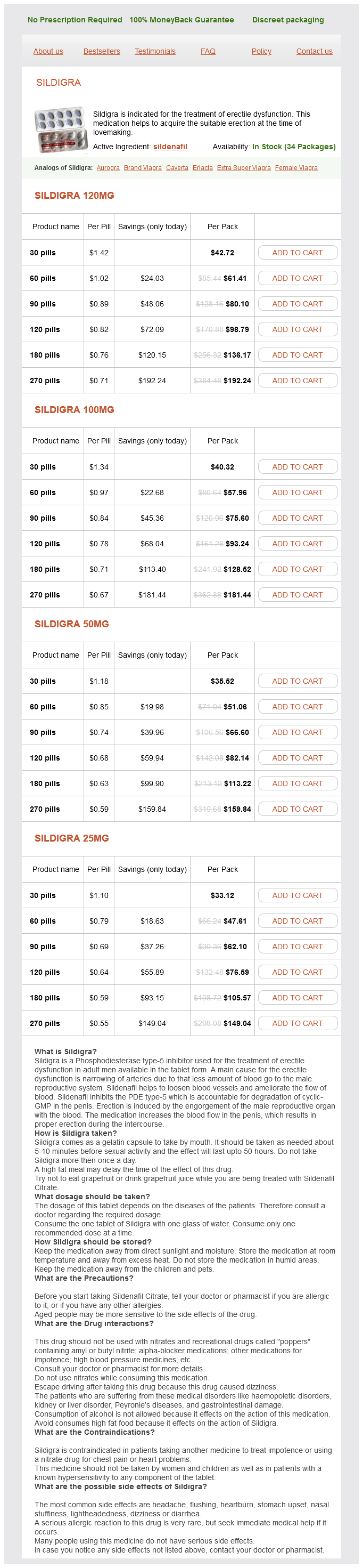Sildigra packs: 30 pills, 60 pills, 90 pills, 120 pills, 180 pills, 270 pills