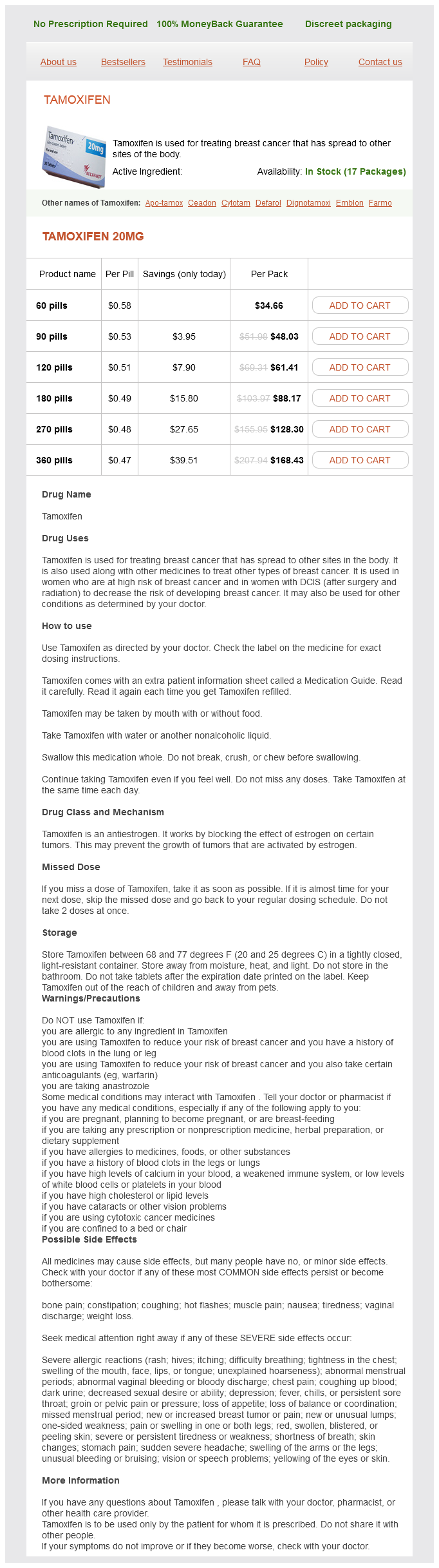 Tamoxifen packs: 60 pills, 90 pills, 120 pills, 180 pills, 270 pills, 360 pills
