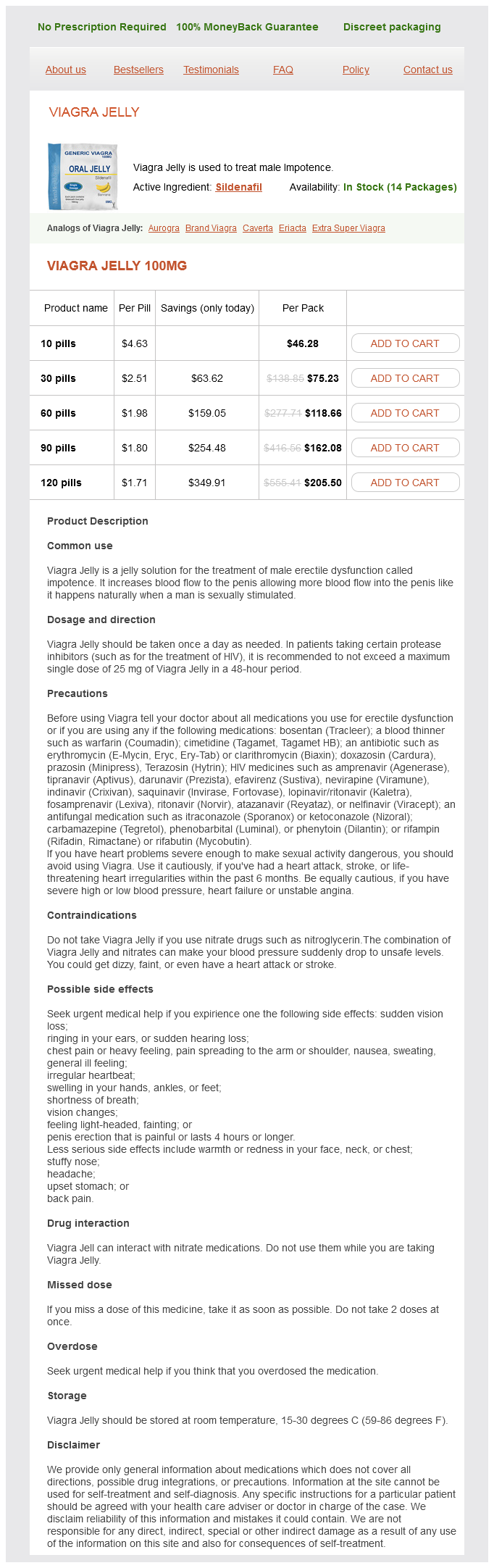 Viagra Jelly packs: 10 pills, 30 pills, 60 pills, 90 pills, 120 pills