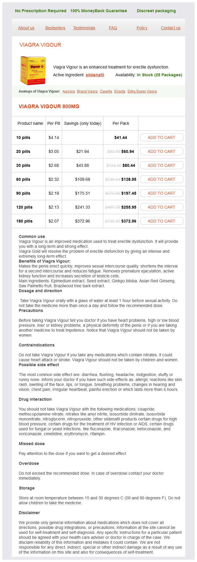 Viagra Vigour packs: 10 pills, 20 pills, 30 pills, 60 pills, 90 pills, 120 pills, 180 pills