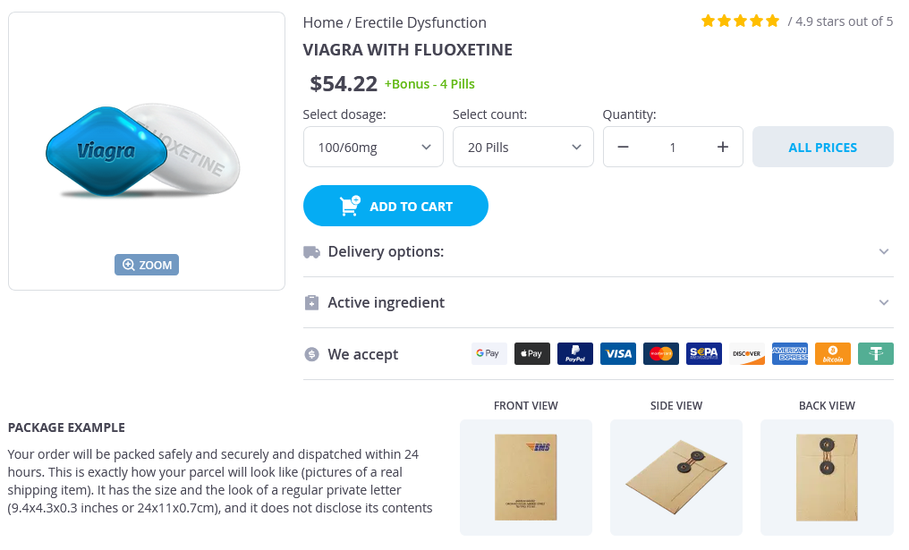 - Viagra with Fluoxetine 100/60mg × 20 Pills - $54.22