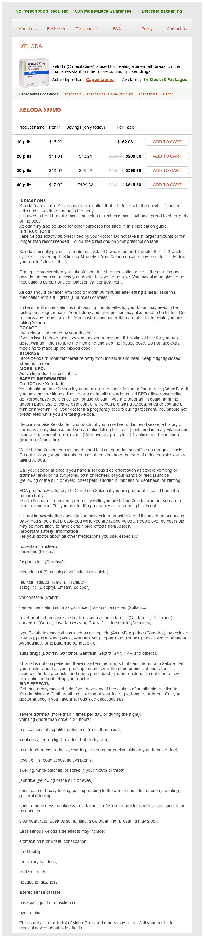 Xeloda packs: 10 pills, 20 pills, 30 pills, 40 pills